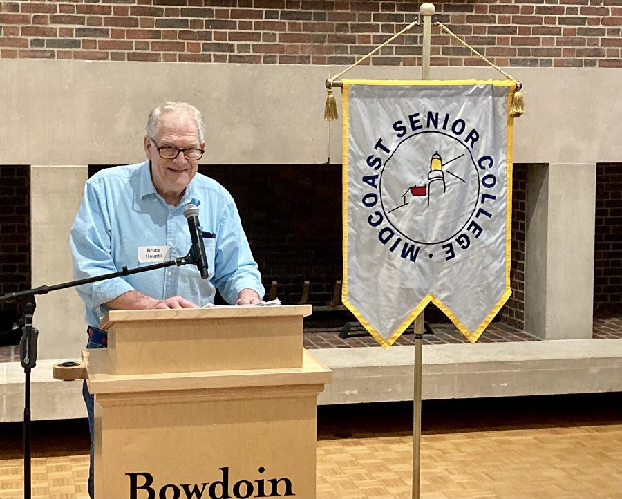- Board President Bruce Hauptli opens Midcoast Senior College’s Annual Members Meeting on June 12 2025.
